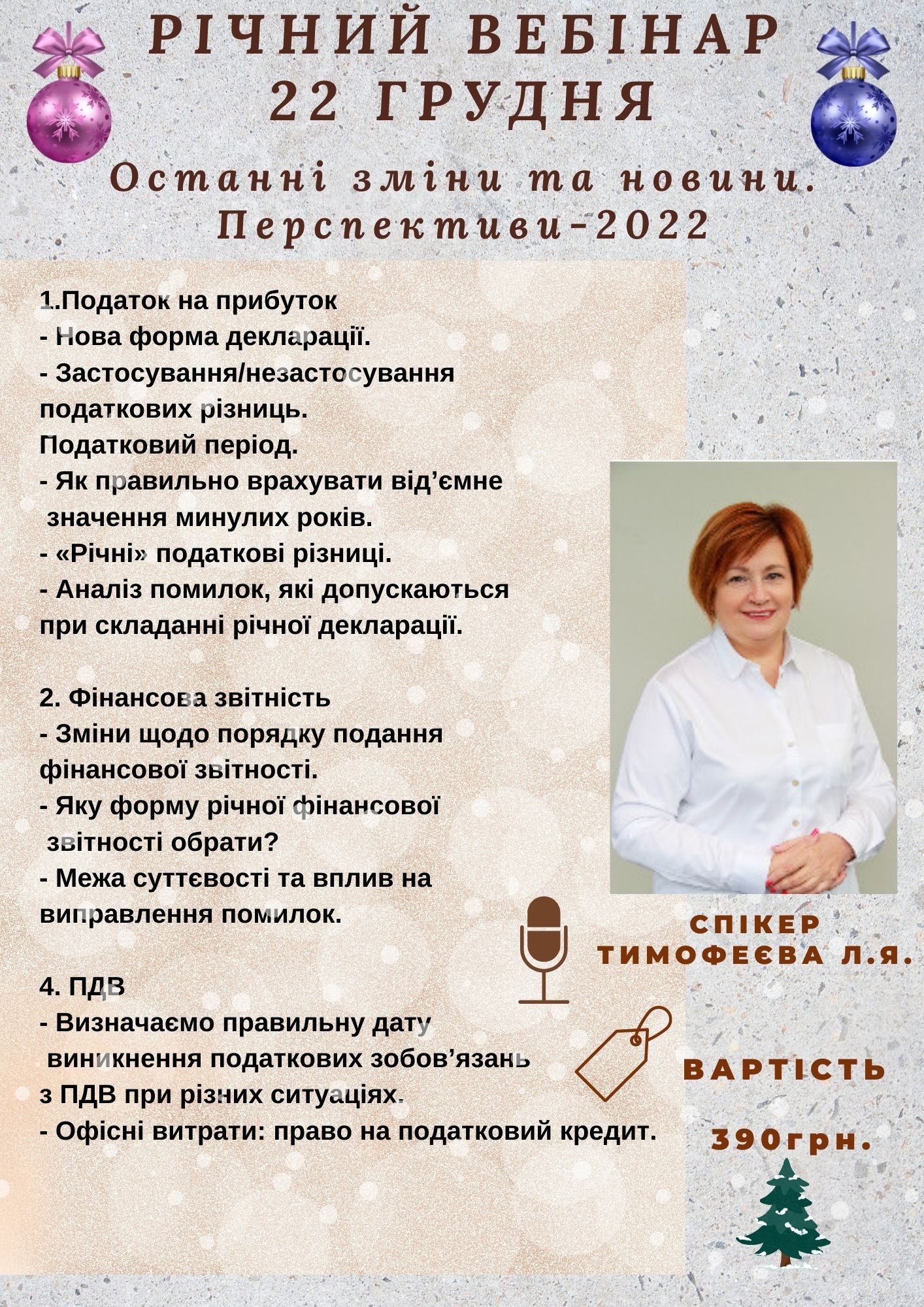 ВЕБІНАР “Річна звітність. Останні зміни та новини 2022”